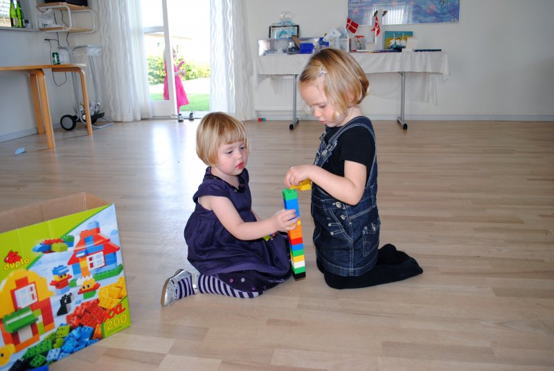 Sofie og Karoline er meget koncenteret om deres legotårn