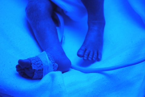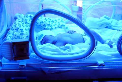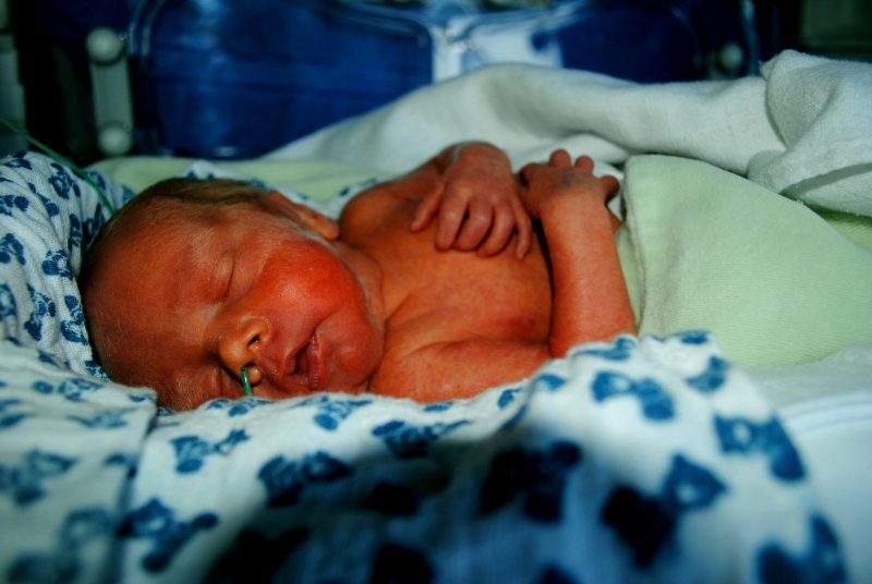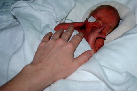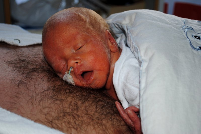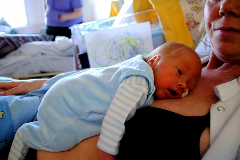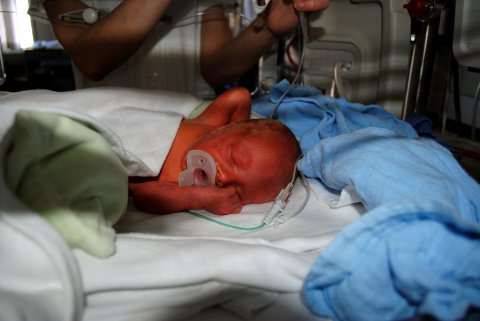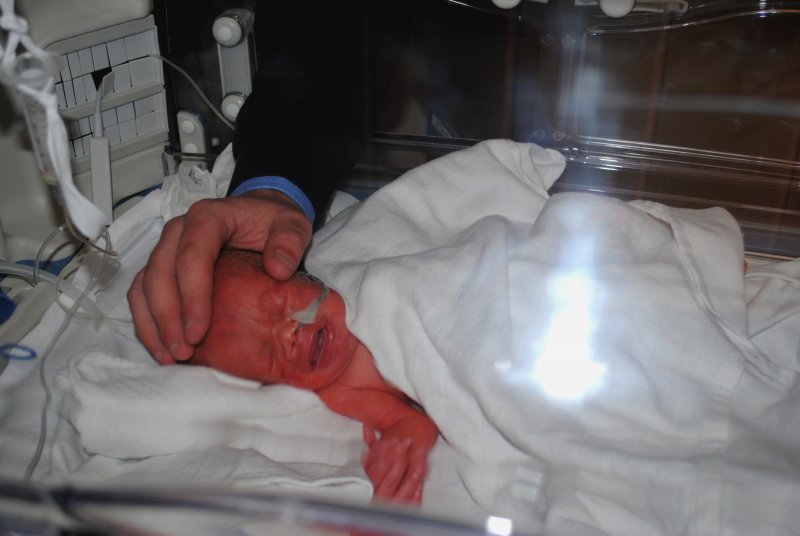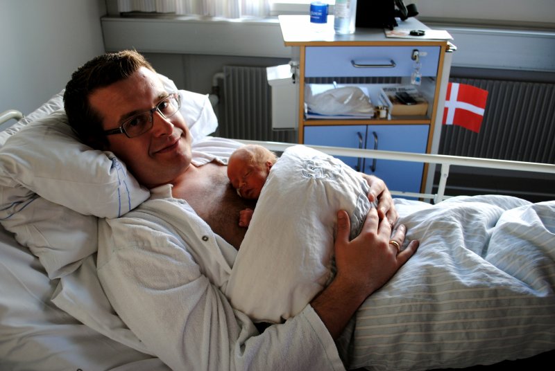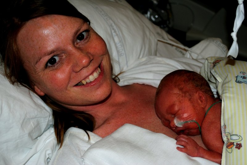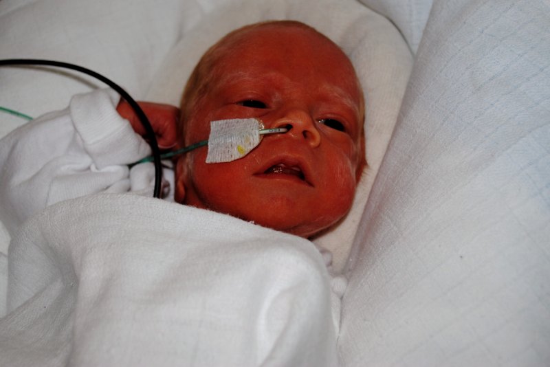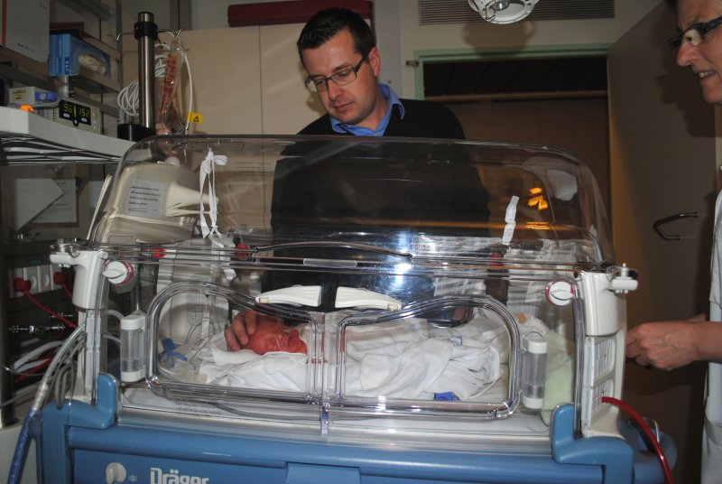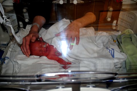 På vej hjem fra hospitalet, 3½ uge gammel og vejer 2.300 gram.