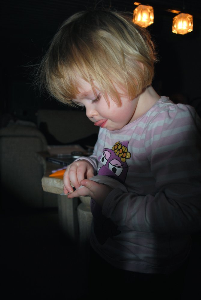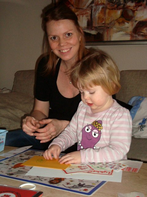 Jeg leger med klistermærker.