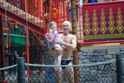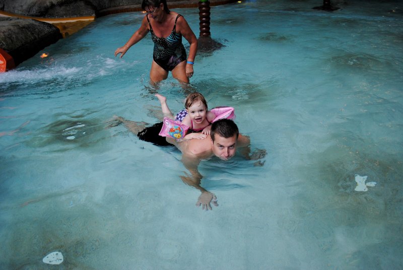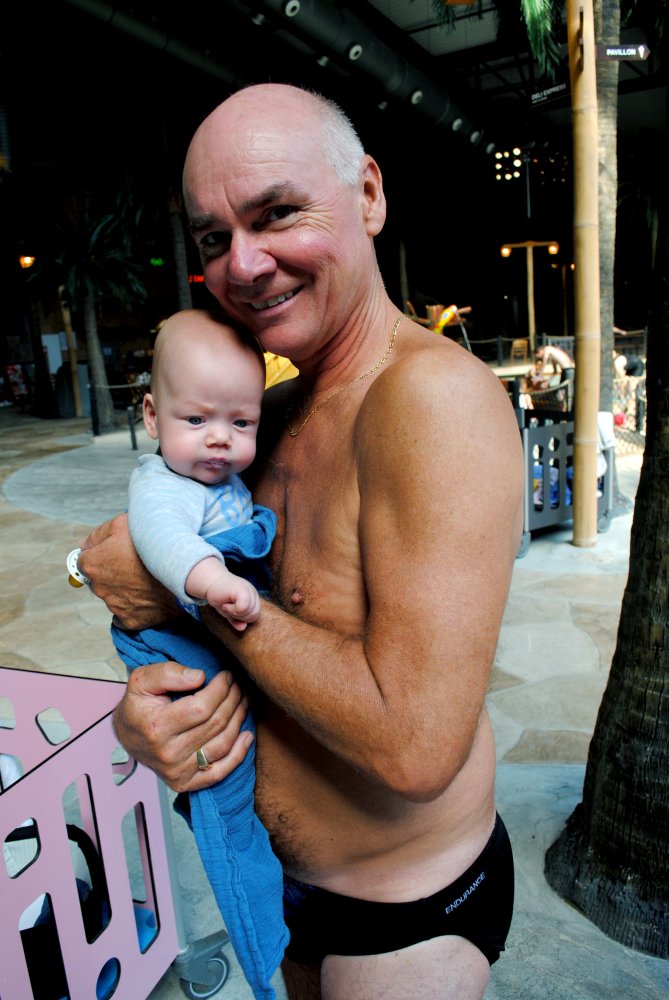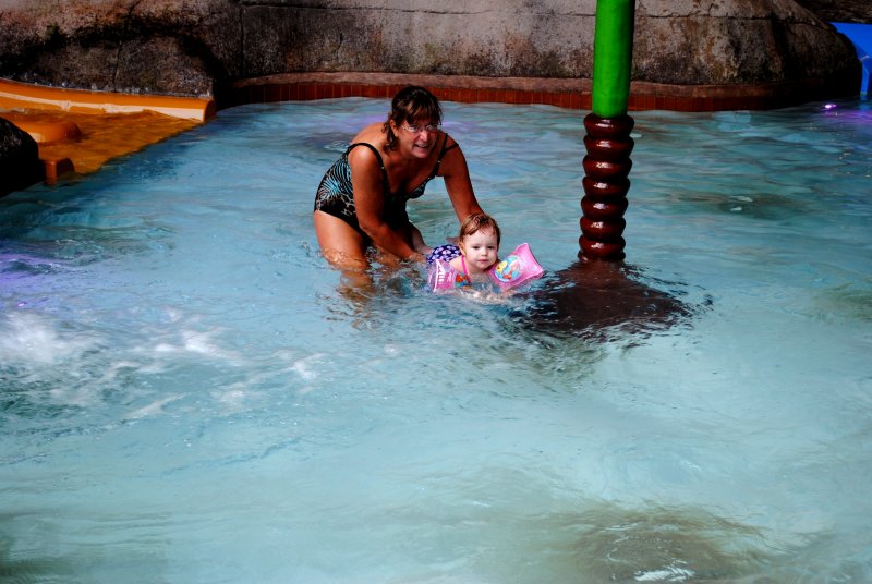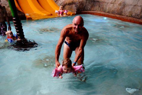 Sofie og Morfar i poolen