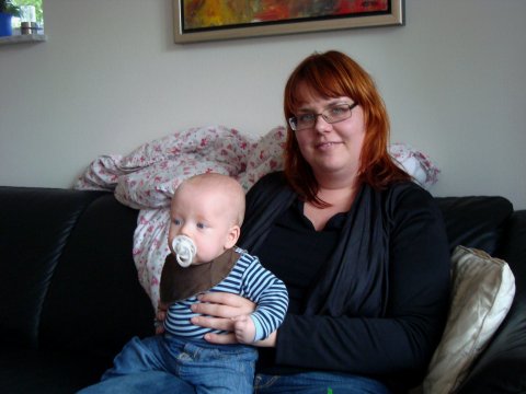 Sidder hos Mor's kusine, Rikke.